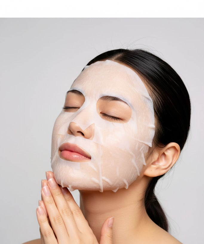 Masken innehåller kollagen (för elasticitet), hyaluronsyra (för djup återfuktning), ceramid NP (för att stärka hudbarriären) och niacinamid (för att jämna ut hudton och struktur).